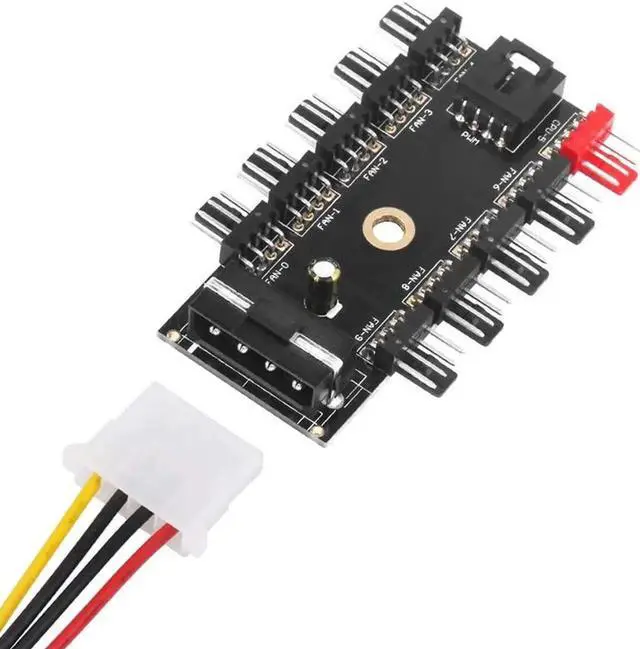 • Aomoproing 10 Port PC Chassis Fan Hub CPU Cooling HUB 12V 4 Pin Fan PWM Hub Molex Controller