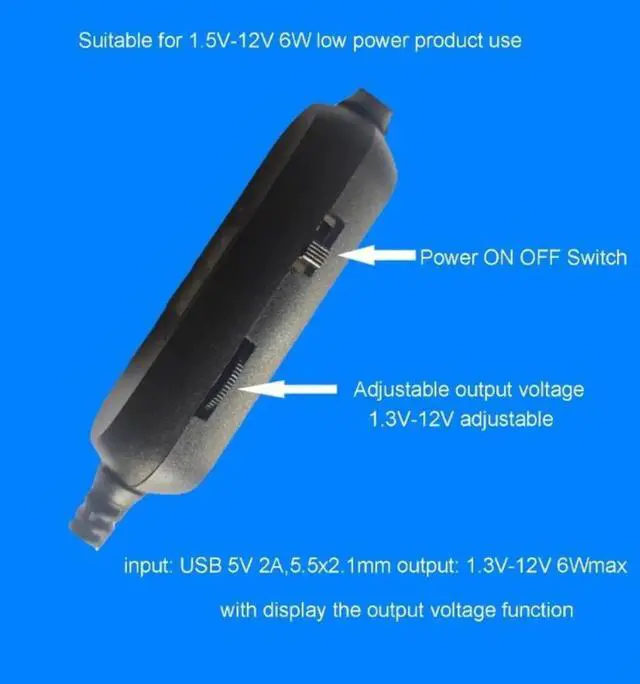 • Aomoproing USB to 5.5x2.1mm 1.3V-12V Adjustable Voltage Power Cable for Clock Toy Fan LED