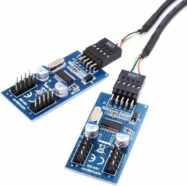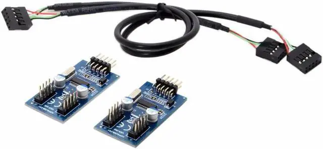 • Aomoproing 9pin USB 2.0 Header 1 to 2 / 4 Female Extension Cable HUB Connector Adapter Port Multilier