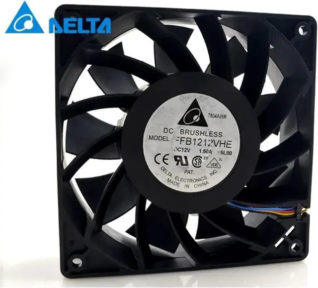 • Aomoproing FFB1212VHE 4 Wires Server Inverter Blower DC 12V 1.5A 12038 120*120*38mm 120mm Cooler Double Ball Cooling Fan for Delta