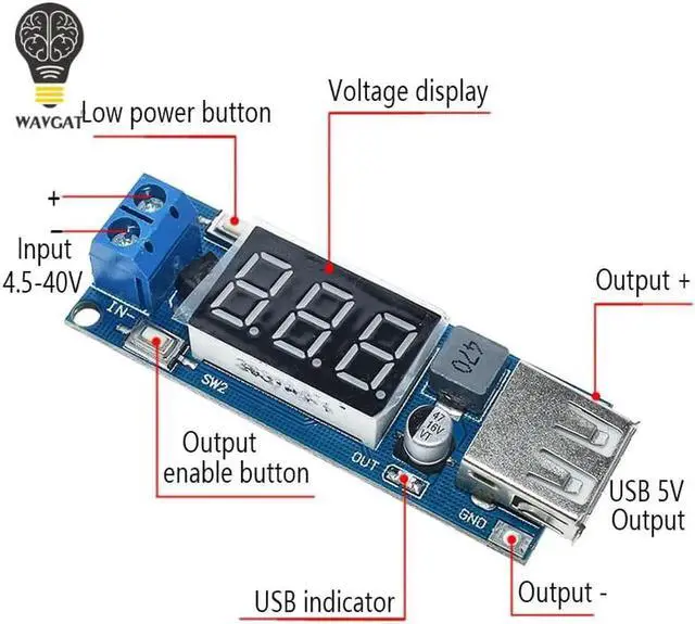• Aomoproing DC-DC Step Down Module Two-wire Voltmeter 5 V USB Charger or Power Supply Input 4.5V-40V Output 5V/2A