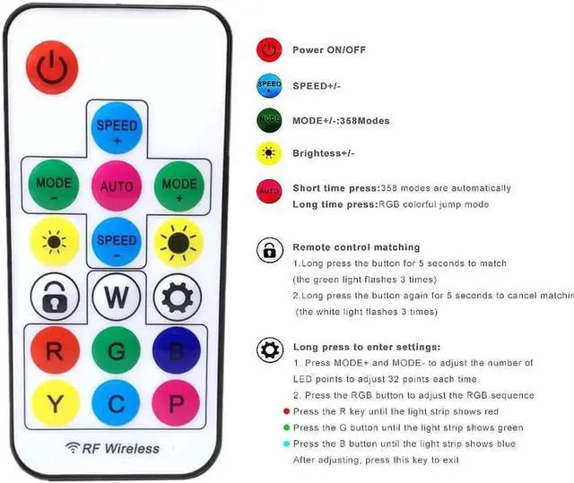 2. If the led strip length is above 5m, you need conenct extra power to add voltage!