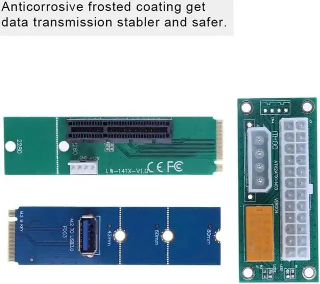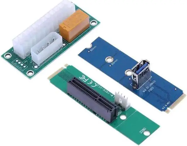 • 3 in 1 NGFF M.2 to USB 3.0 Card+NGFF to PCI-e 4X Card+ATX 24Pin to for Molex 4Pin Dual PSU Power Supply Sync Starter Extender