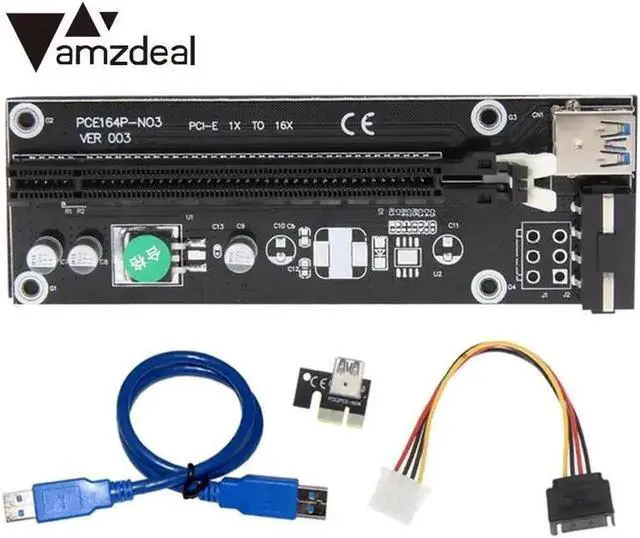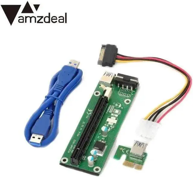 • PCI-e PCI-E Express 1X to 16X USB 3.0 Riser Extender Adapter w/ SATA Power Cable Anti-burning
