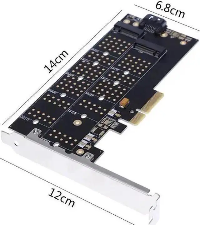 • PCI-E 4x to NVMe M.2 NGFF B Key + M.2 NGFF M Key SSD Slot Adapter Card for 2230/2242/2260/2280 NGFF SSD Cards High Speed