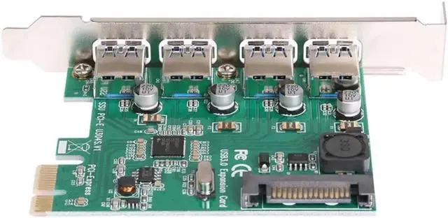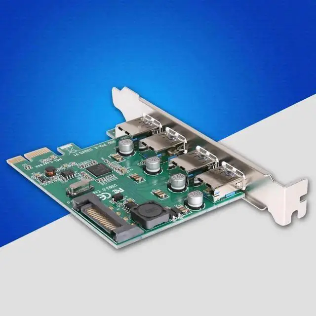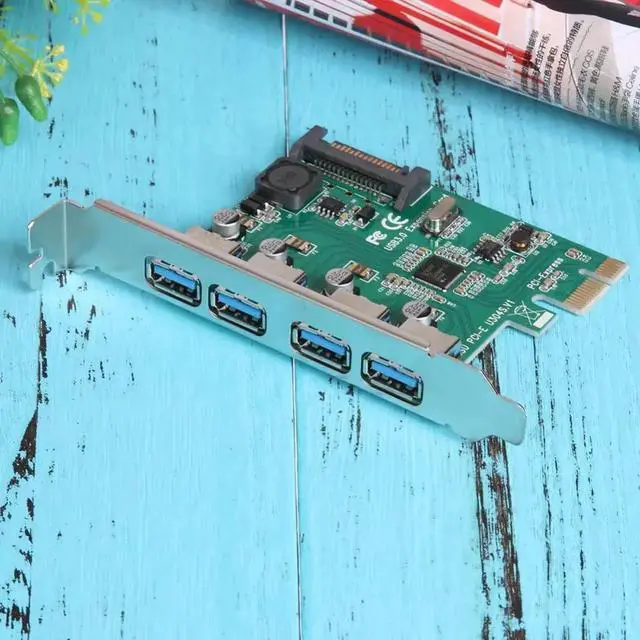 • PCI-E Expansion Post Card 4 Ports USB 3.0 PCI Express Card 5Gbps Compatible for Windows XP/7/8/8.1/10 with Optical Disc