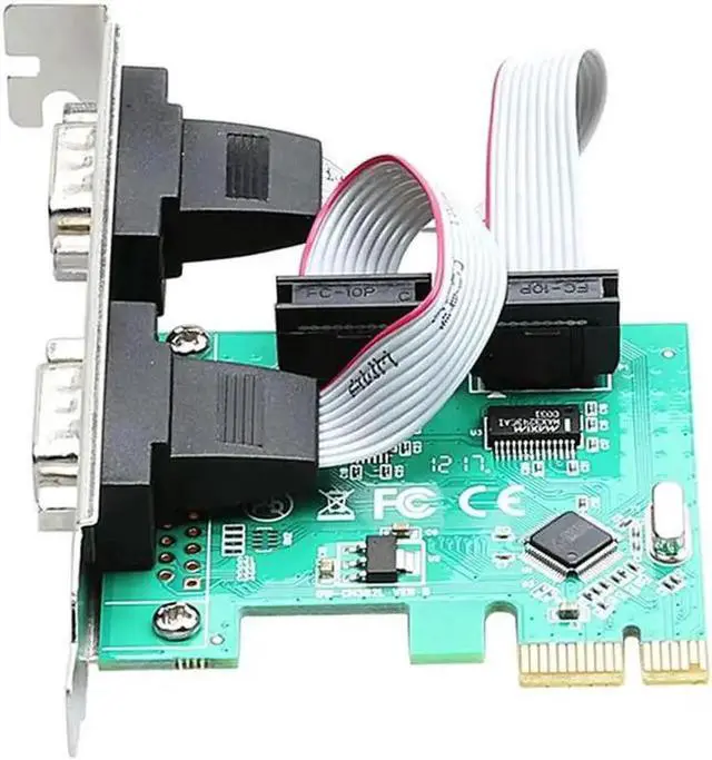 • PCI-E PCI Express Dual Serial DB9 RS232 2 Ports Controller Adapter Riser Card Green WCH382L Chipest