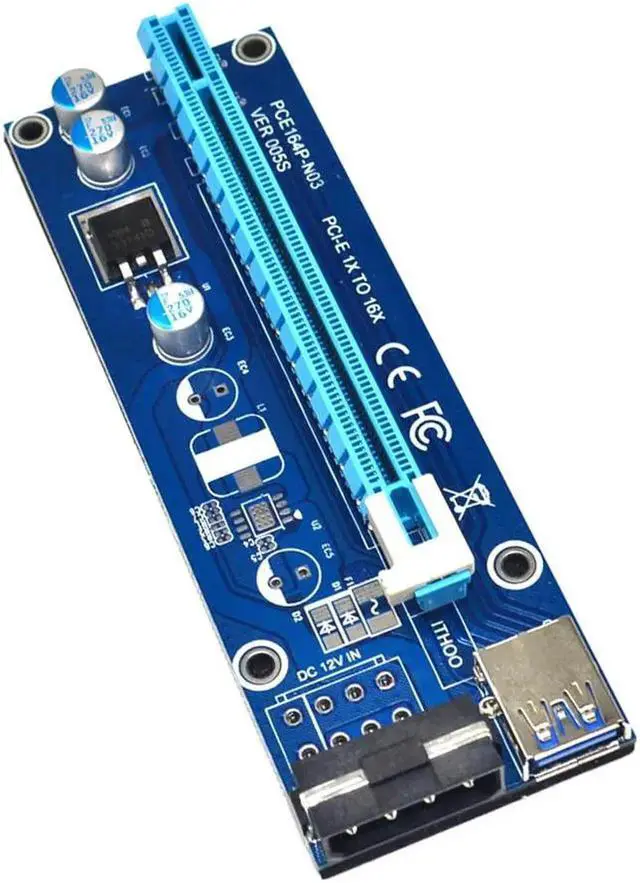 • Right Interface PCIe PCI-E PCI Express Riser Card 1x to 16x USB 3.0 Data Cable with SATA 15 Male to 4pin power cable Blue