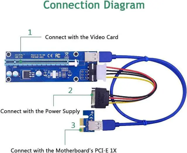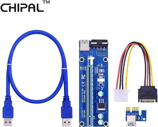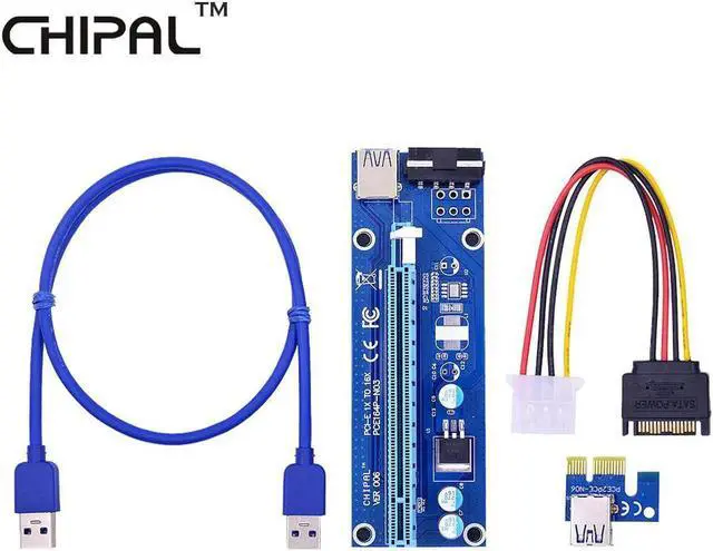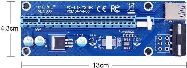 • Blue PCE164P-NO3 VER006 0.6M PCIE PCI-E 1X to 16X Riser Card Extender + 15Pin SATA to 4Pin IDE Power Cord / USB 3.0 Cable