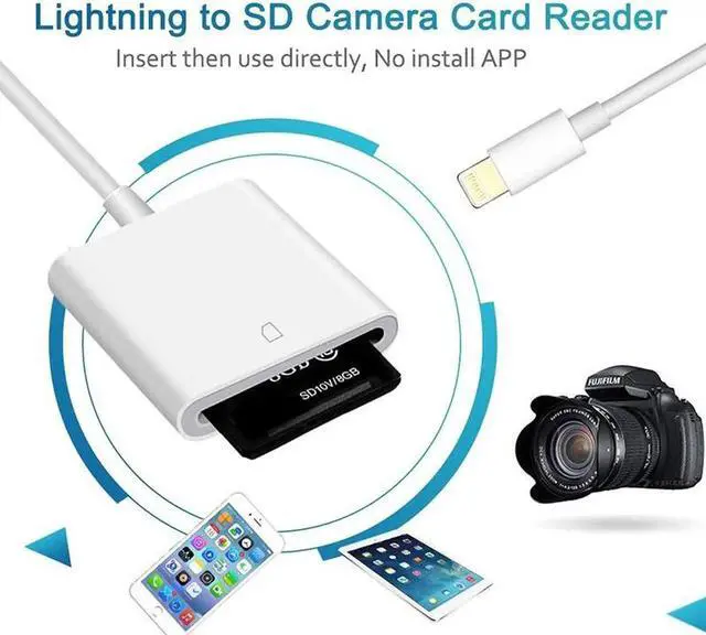 8PINCRSD Lightning SD Card Camera Reader Adapter for IOS 9.2 or up to 11, Trail Game Camera Viewer for iPhone 6 / 6s / 7 / 7Plus / 8/X /iPad Mini/Air- No App is Required