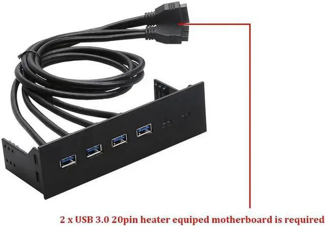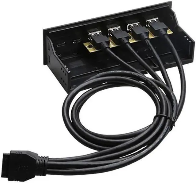 5.25 inch internal 4 Ports USB 3.0 USB Hub 2 x USB 3.0 20pin header on motherboard is needed data transfer speed up to 5Gbps USB female to MB 9pin header cable length is 60CM Black Plastic case