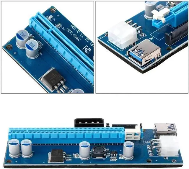 • Riser Card Extender SATA PCI-E 1X To 16X Riser Card with LED Lights USB3.0 Cable SATA 6Pin Power Supply