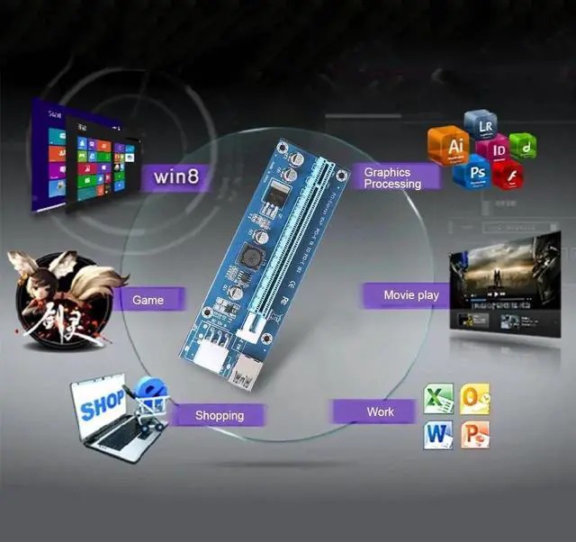 • PCI-E 1 to 2 PCI Express 1X Slots Riser Card w/ 2pcs 6pin Riser Card USB 3.0 Cable SATA 15-6pin Power PCIe Port Multiplier Card
