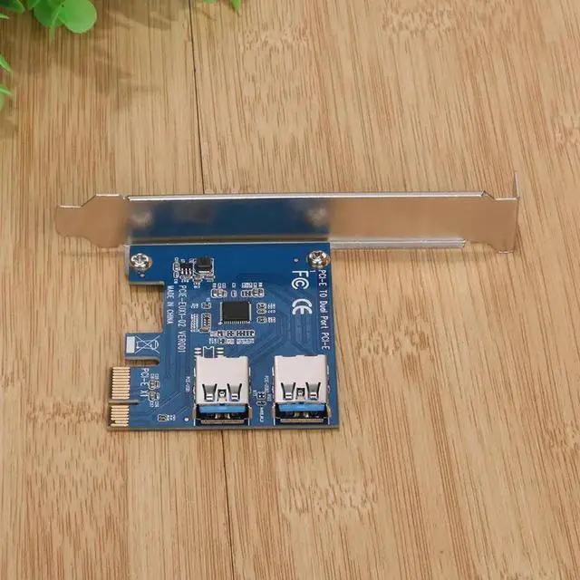 PCI-E 1 to 2 PCI Express 1X Slots Riser Card w/ 2pcs 6pin Riser Card USB 3.0 Cable SATA 15-6pin Power PCIe Port Multiplier Card