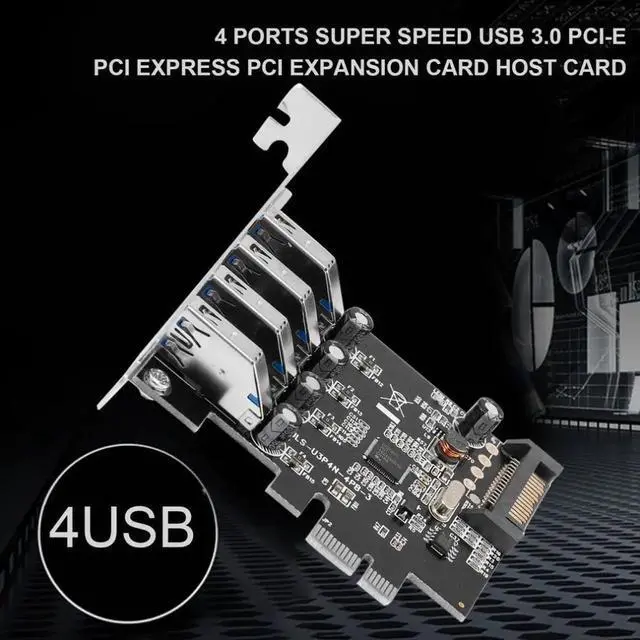 • 4 Ports Super Speed USB 3.0 PCI-E PCI Express PCI Expansion Card Host Card Hub Controller Adapter U3P4N-4PB-S
