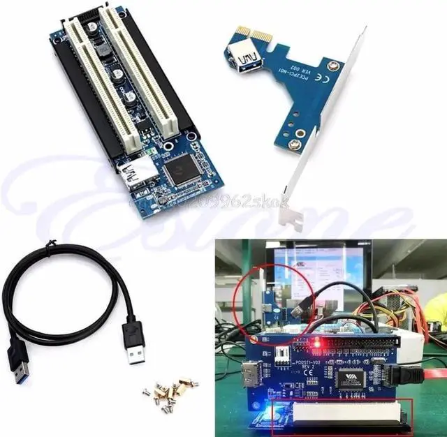 • PCI-E Express X1 to PCI Dual Riser Extend Adapter Card With USB 3.0 Cable