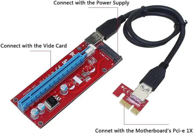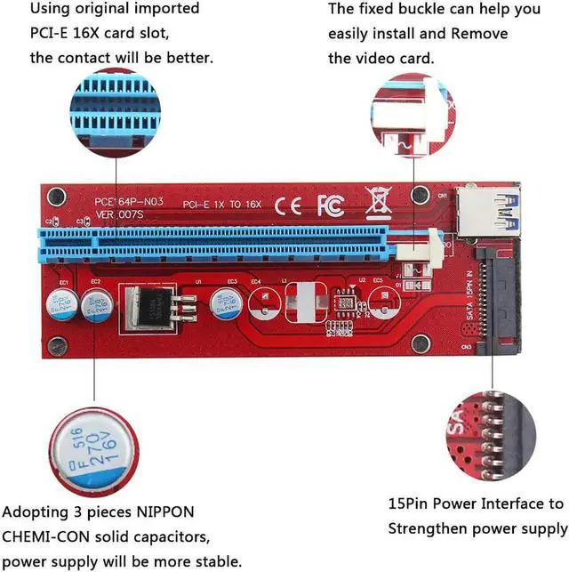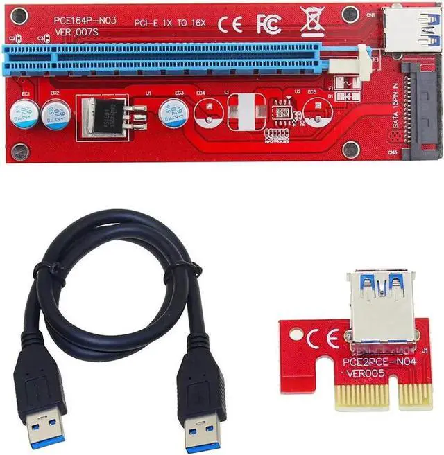 • VER007S 0.6M PCI-E 1X to 16X Mini Pcie Riser Card Extender PCI Express Adapter With USB 3.0 Data Cable 15Pin SATA Power Supply