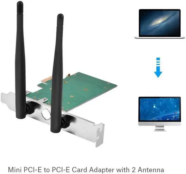 • Add On Cards Mini PCI-E to PCI-E Card Adapter with 2 Antennas for Full Size PCI Express Wireless Card