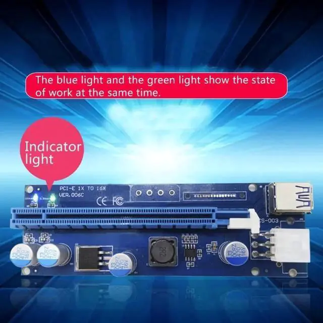 • PCI-E 1X To 16X Riser Card With LED Lights USB3.0 Cable SATA 4/6Pin Power Supply