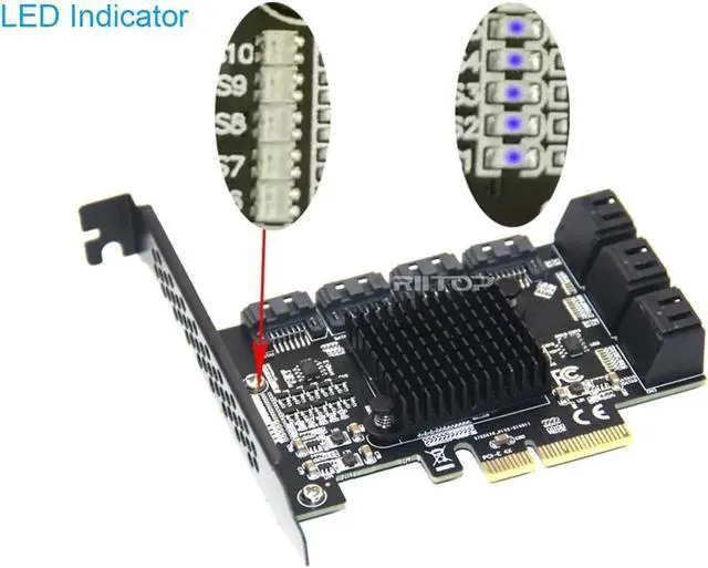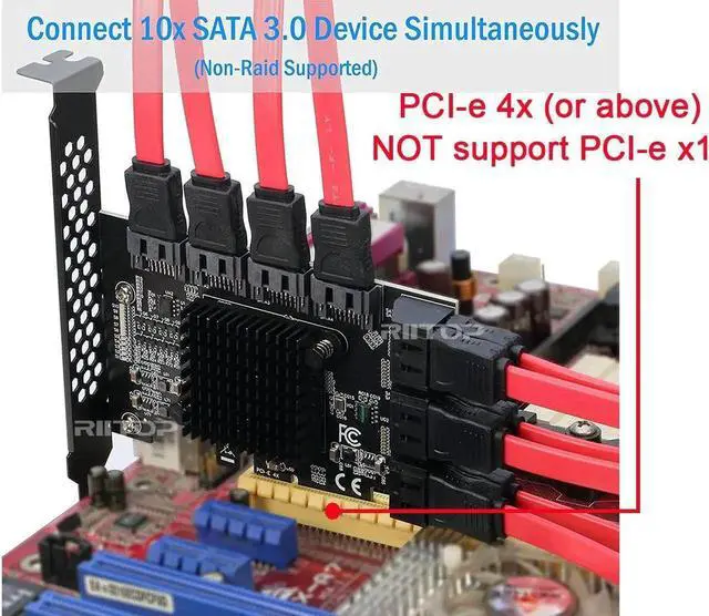 PCIe SATA Card allows you add Extra 10x SATA 3.0 Ports via PCI-e x4/x8/x16 slot to your mainboard, No drivers need. Easy to install, Plug and play