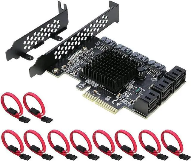 [Package including] 1x SATA PCIe Card 10Ports; 10x SATA Cables; 1x Low-Profile Bracket
