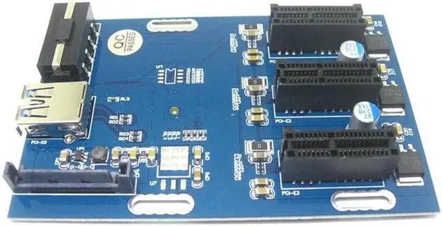 PCIe x1 to 3 Slot Hub Card This card is just for PCIe slot expanding, can ot enchance your motherboard PCIe x1 slot bandwidth All 3 PCIe slots works in PCIe Gen2 mode Power by SATA and Molex 24 inches USB 3.0 cable include