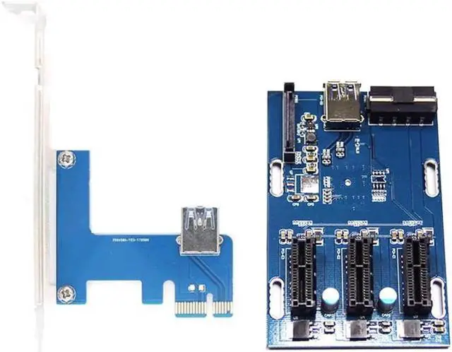 PCIe x1 to 3 x1 Slot PCI-e Express Switch Multiplier Hub GPU Riser Card Adapter w/USB 3.0 Cable,PCIe 1x to 3 Ports Splitter Power by SATA & Molex for Video Card Mining