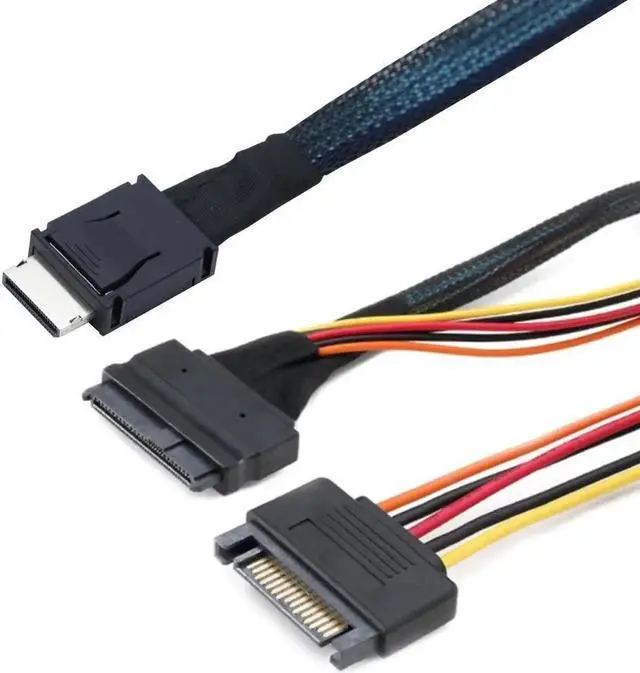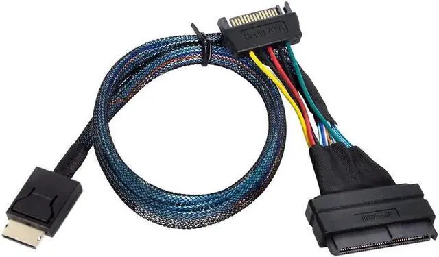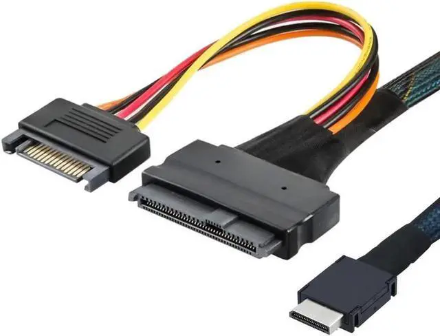 PCIE Gen 4 Oculink SFF-8611 4I to to U.2 U.3 SFF-8639 NVME PCI-Express SSD Cable with SATA Power -12Gb/s SFF8611 Host to SFF8639 Device ,Sleeved Black ,1.64FT