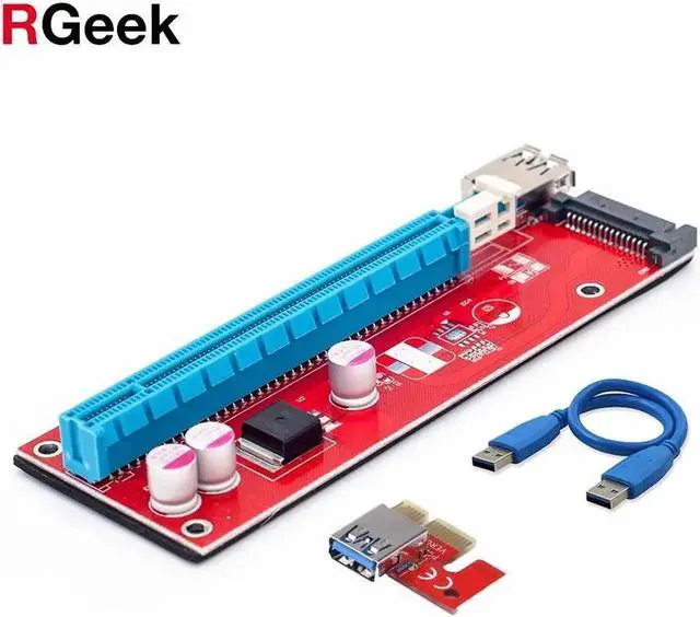 • Red VER007S PCI Express Riser Card 1x to 16x PCI-E extender 60cm USB 3.0 Cable 15Pin SATA Power for BTC Miner