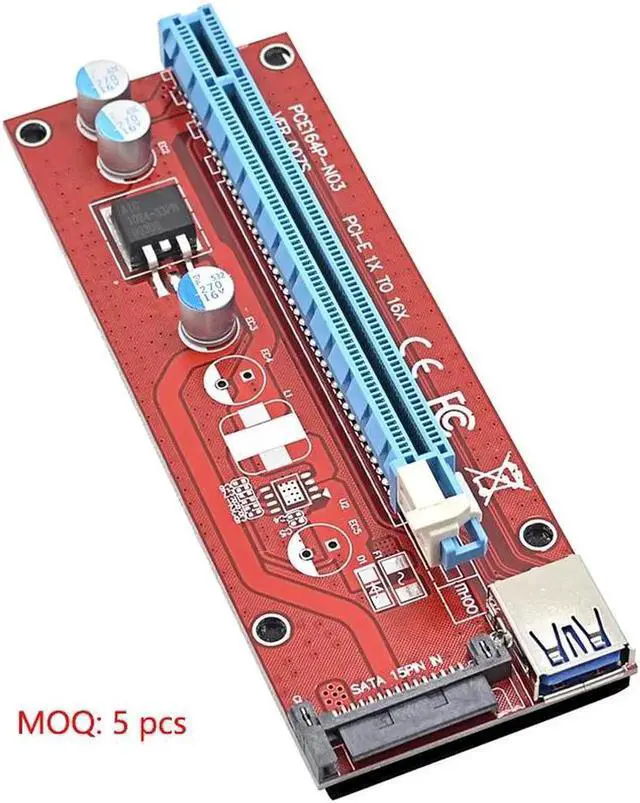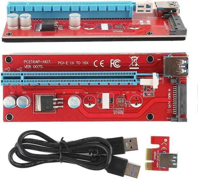 • 0.6M PCI-E 1X to 16X Riser Card Extender PCIE PCI Express Adapter with USB 3.0 Cable + 15Pin SATA Molex Power Connector