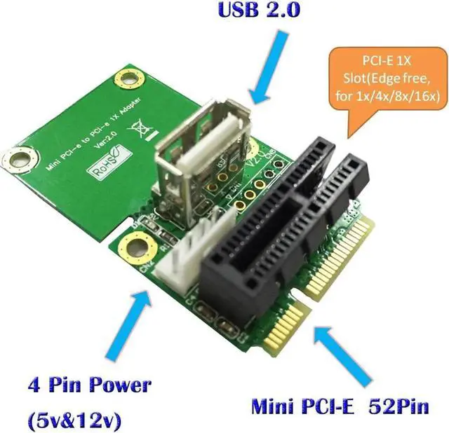 • Mini PCI E to PCI Express PCI E 1x Board USB 2.0 Half Full Mini PCIE Adapter Card 4Pin Power Supply Computer Components for PC