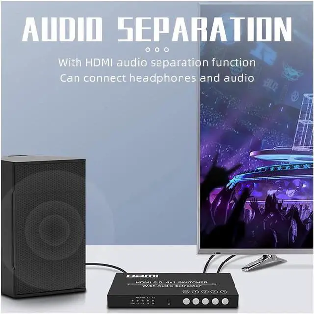 HDMI 2.0 Switch 4K@60HZ HD 4 Port HDMI Switcher 4 In 1 out Audio Separation with 3.5mm Analog Audio Digital Fiber Coaxial Port Remote Control