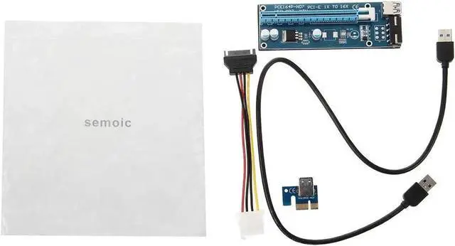 • For Semoic USB 3.0 PCI-E Express 1x to 16x Riser Board Extender Adapter Card with SATA Cable