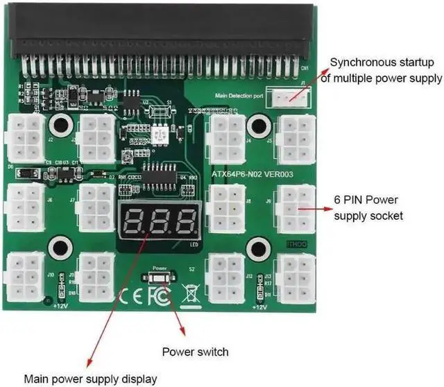 PCI-E 6Pin Power Supply Server Breakout Board with 12x PCI-E 6Pin Port for HP PSU GPU Mining Ethereum Bitcoin