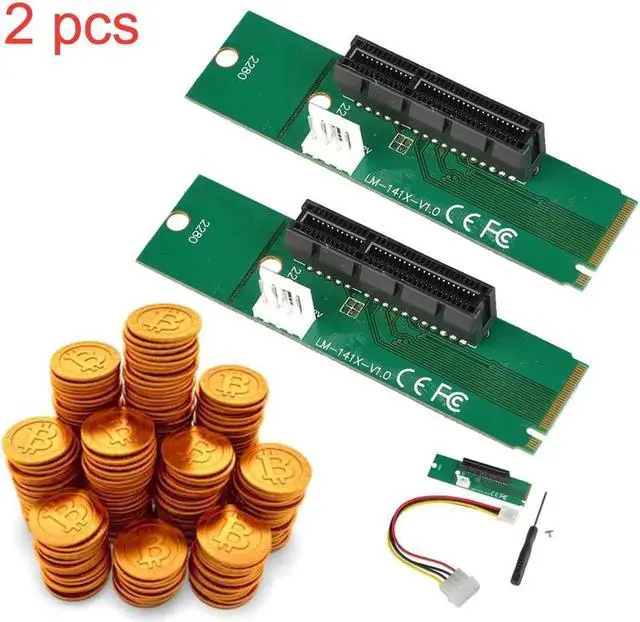• 2 pcs/pack M.2 NGFF SSD Male to PCI-e Express 4X Female Converter Adapter Card with 4 pin power supply cable for Bitcoin Mining