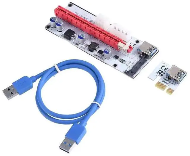 • 10pcs PCI-E Riser Express 1x to 16x Extender Riser Adapter Card USB3.0 Data SATA 4pin Power Cable for BTC Mining Card