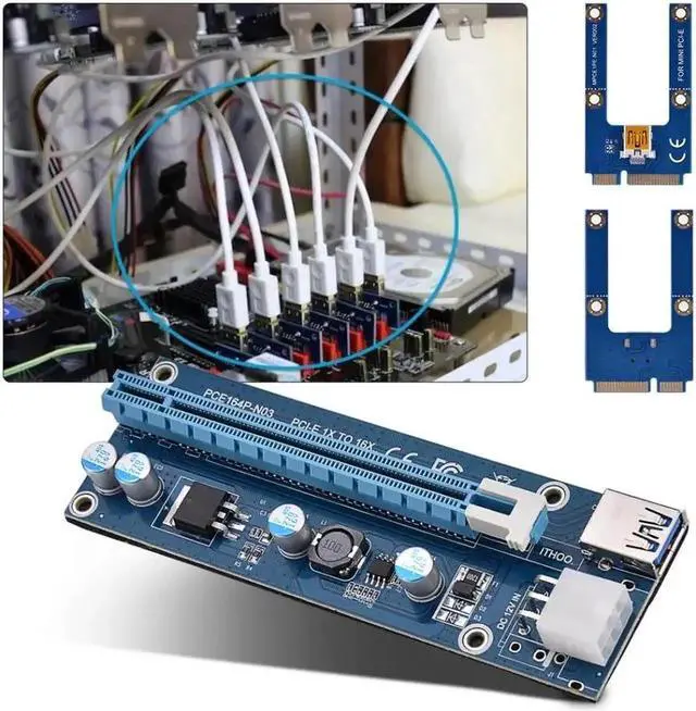Mini PCI-E to PCI Express16x Extender Riser Adapter With SATA Power Cord for Video Card Mining