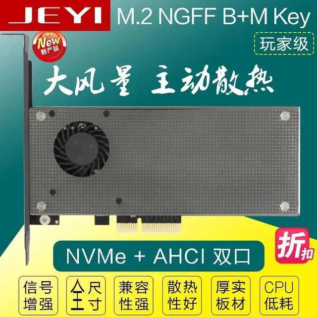JEYI SK8 m. 2 add on card NVMe adapter NGFF turn PCIE 3.0 cooling fan SSD dual interface SATA3 with fan Aluminum cover capacitance