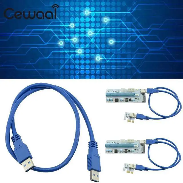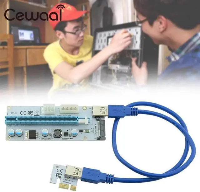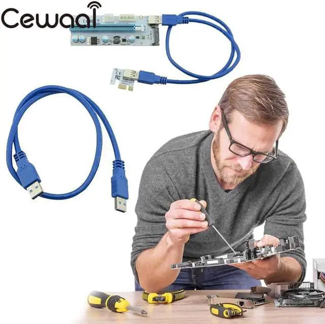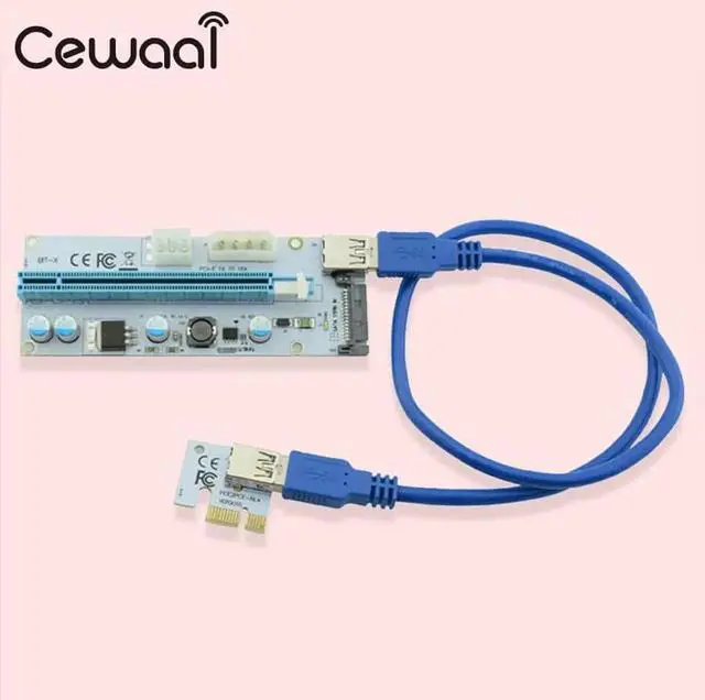 • PCIE PCI-E 1x To 16x Graphics Card 4PIN/6PIN/SATA USB 3.0 Extension Cable