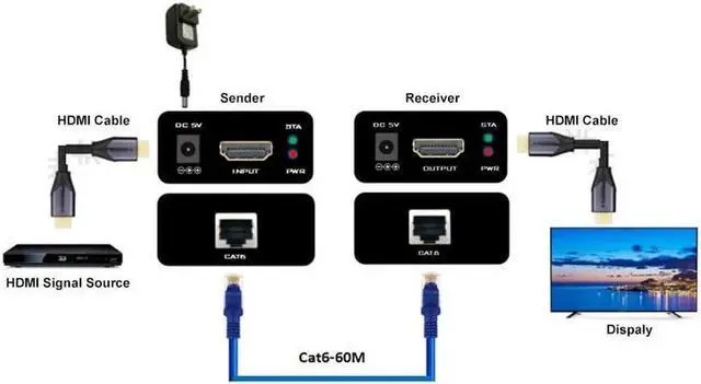 • TLT-TECH 1080P 3D 60m HDMI Extender over IP CAT6/7 HDMI to RJ45 Converter Signal extender
