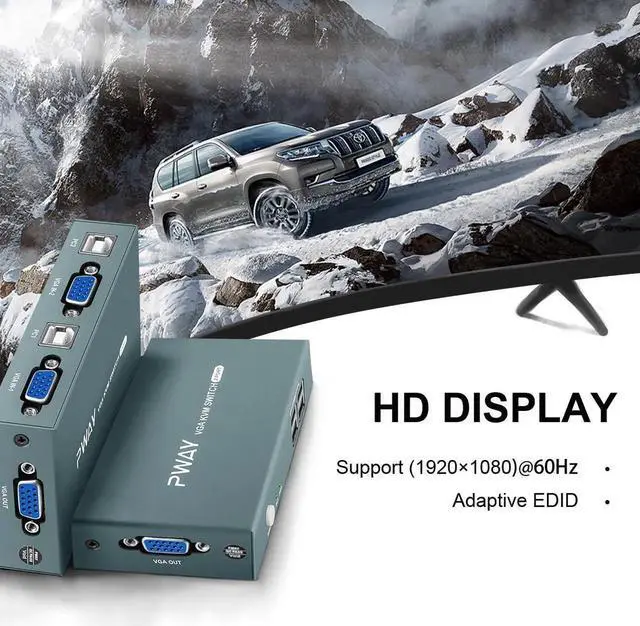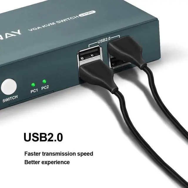 • 2 Port VGA KVM Switch VGA with 2PC Computers Sharing 1 Keyboard Mouse Monitor for Working Video Meeting Teaching Conference