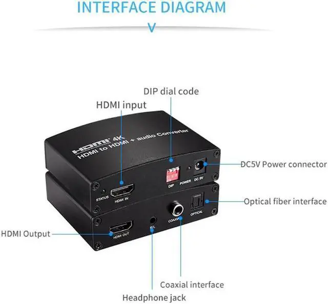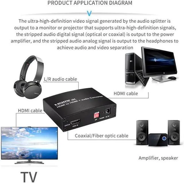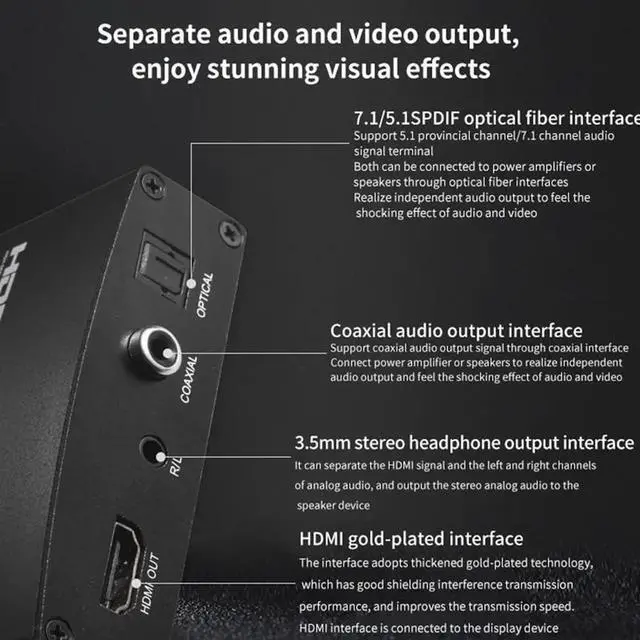 • KuWFi HDMI Audio Converter 4K Splitter 7.1 Digital Optical Fiber 3.5Audio Output High Compatiblity Converter for TV Earphone PC