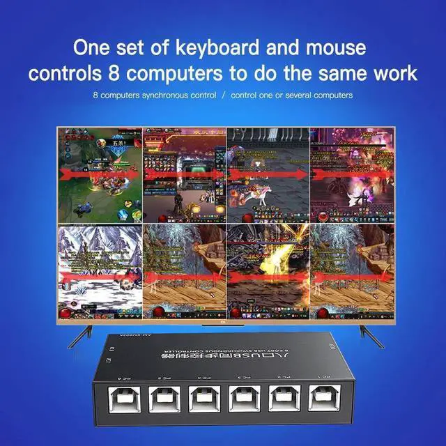 • 6 Ports USB KVM Switch USB Synchronizer KVM Switcher for Windows10 PC Keyboard Mouse Printer Synchronization Controller