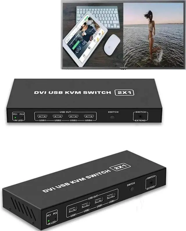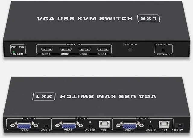 • USB VGA KVM Switch 2x1 2 port audio&video VGA Multi-viewer KVM function switcher box Multiviewer with Remote control