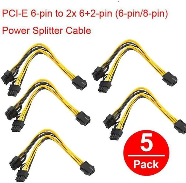 • 5Pcs PCI-E 6-pin to 2x 6+2-pin (6-pin/8-pin) Power Splitter Cable PCIE PCI Express