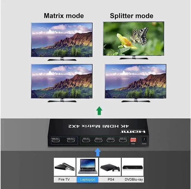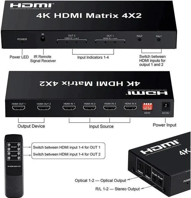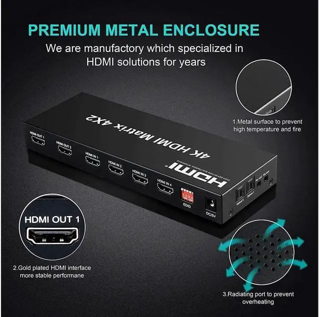 [Premium Quality] This 4x2 HDMI Matrix contains in-built automatic equalization and amplification to ensure optimum transmission without loss in video/audio quality.