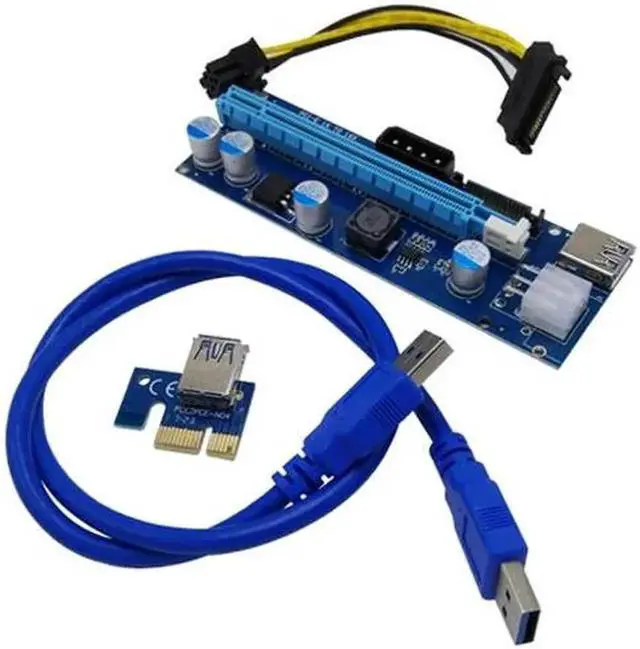 • PCI-E Express 1X To 16X Extender Riser Card Adapter USB 3.0 SATA 60CM 6-Pin Power Line Cables For BTC Miner Machine