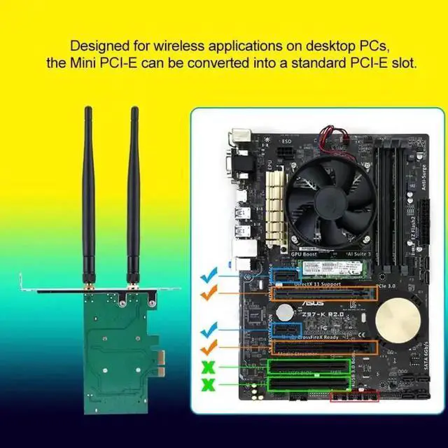 • Mini PCI-E to desktop PCI-E Adapter PC Wireless Network Card Full high 2 Antenna Card Plate