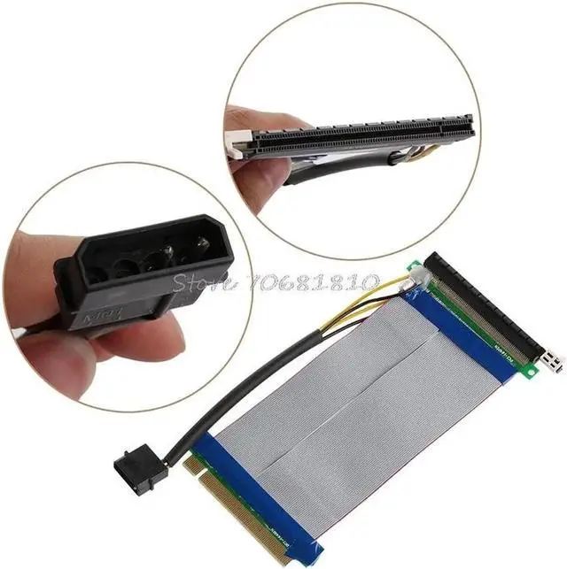 • Powered PCI-E 16X to 16X Adapter Riser Extension Cable Molex Power Connector
