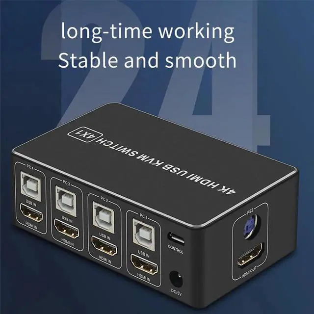 • 4 Port 4K USB HDMI-compatible KVM Switch Switcher 4 in 1 Out Selector Connector Control up to 4 Monitor Mouse Keyboard PC Laptop